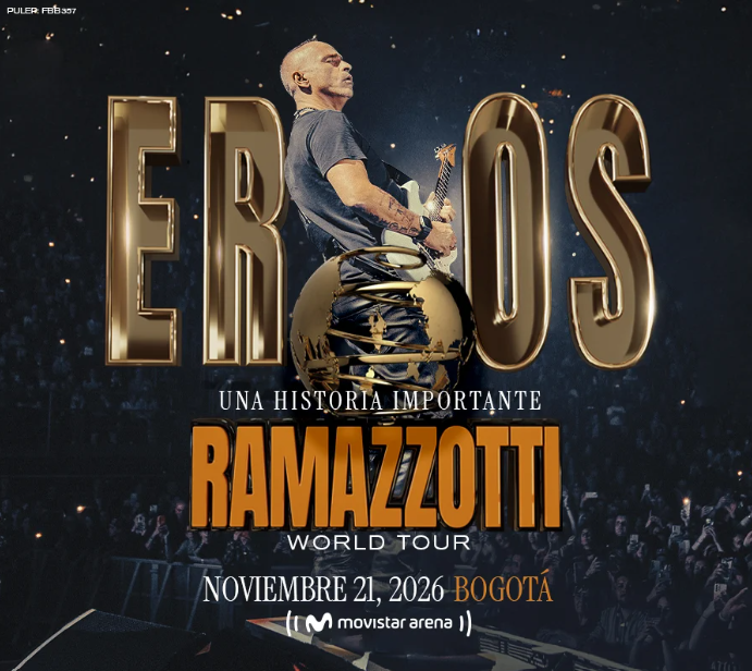 Eros Ramazzotti regresa a Bogotá en noviembre de 2026 como parte de su esperado tour mundial, con una única presentación en el Movistar Arena. Ícono de la música italiana y una de las voces más queridas del pop romántico internacional, Eros presentará lo mejor de su carrera en una noche cargada de emoción, nostalgia y grandes éxitos como "La cosa más bella", "Otra como tú" y "Si bastasen un par de canciones". Un concierto imperdible para los amantes de la buena música y los sentimientos a flor de piel. ¡Prepárate para vivir una velada inolvidable junto a una leyenda viva de la música!